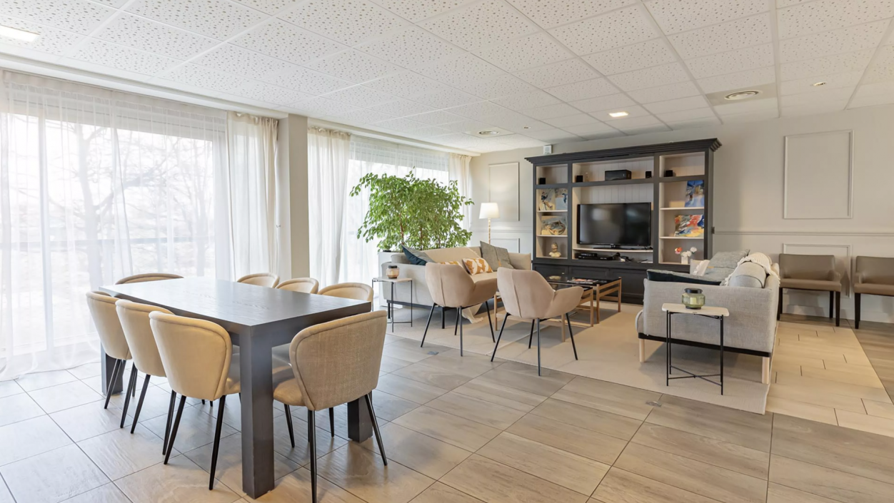 🏊 Espaces communs de qualité : salons, bibliothèque, salle de sport, piscine chauffée